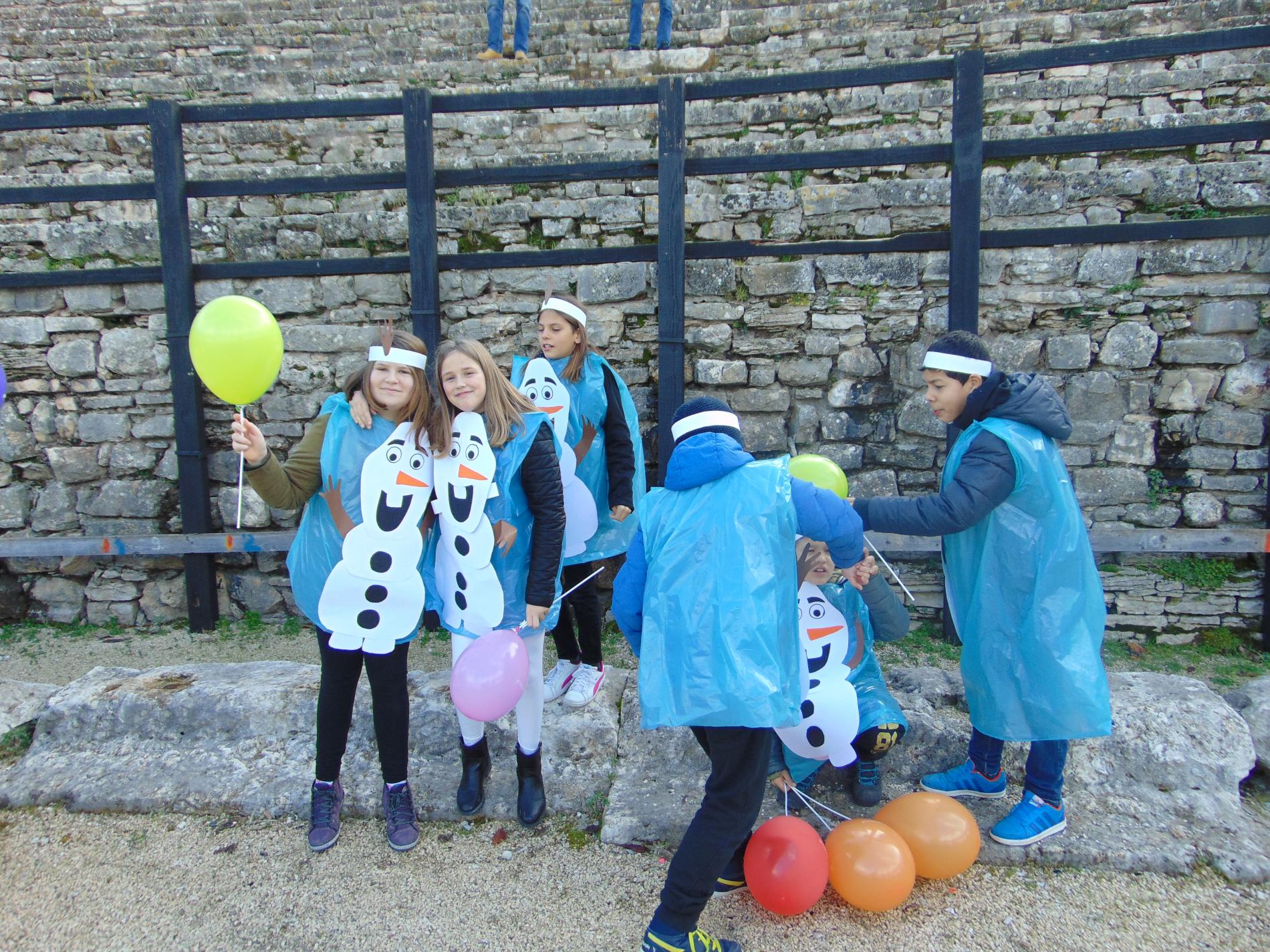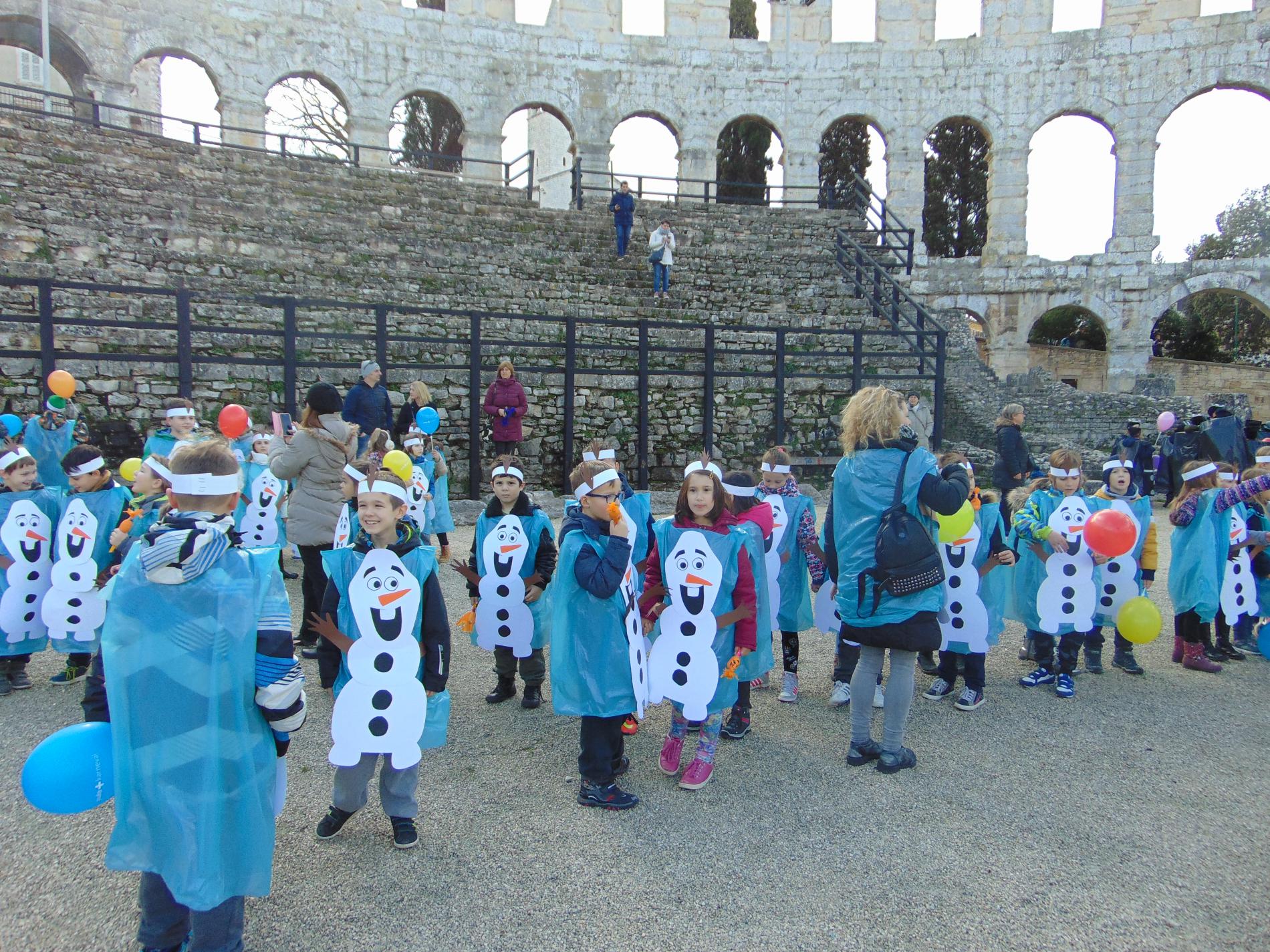 Oggi Olaf e' arrivato all'Arena di Pola, anzi non uno solo, tantissimi. Per chi non lo conosce: Olaf e' un personaggio molto simpatico e amato dai bambini, del famoso cartone animato Frozen, il regno di ghiaccio della Walt Disney.