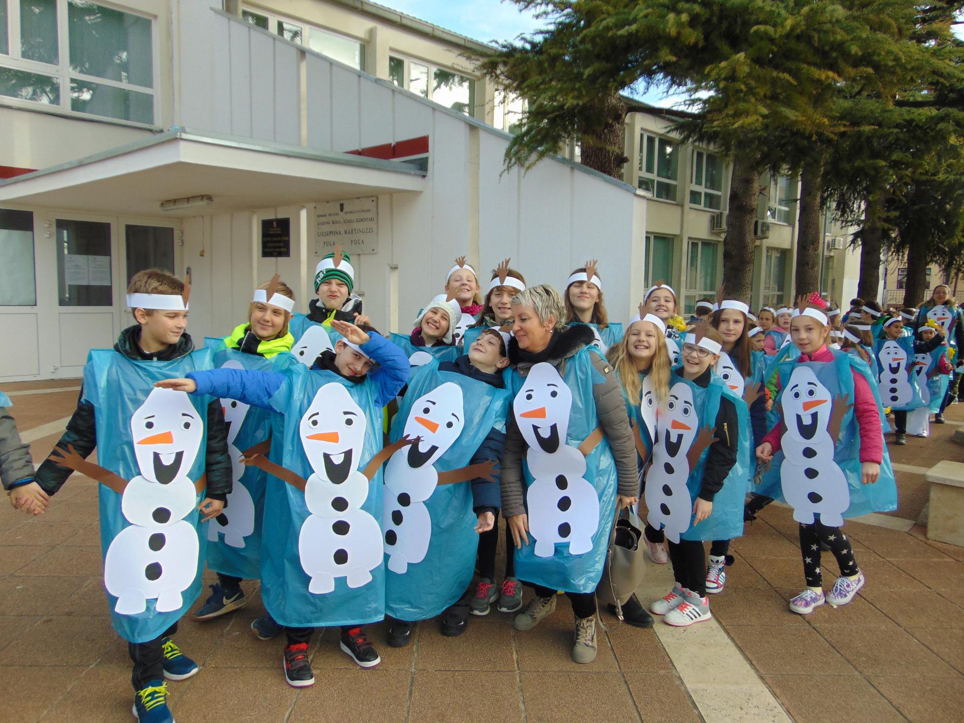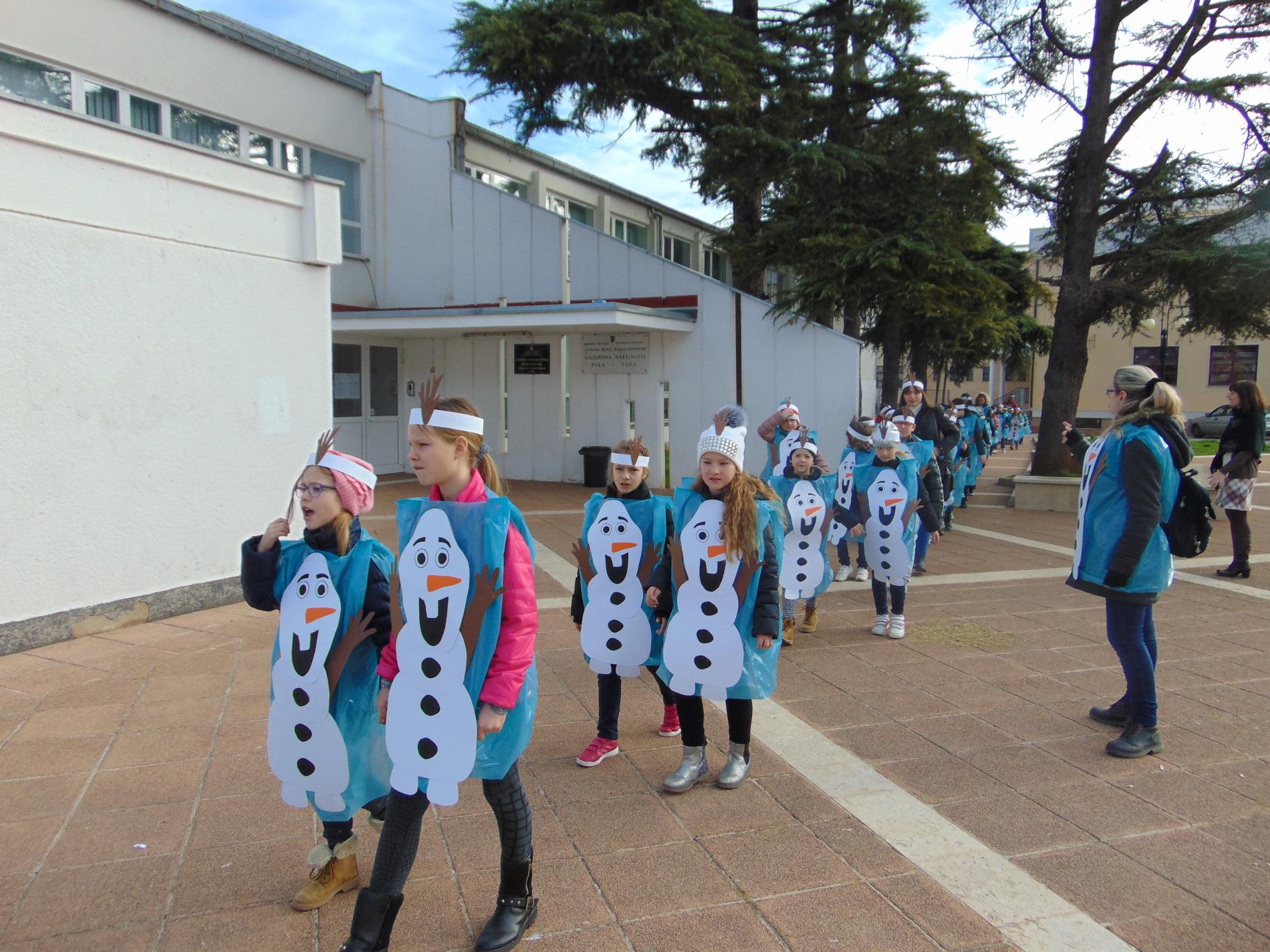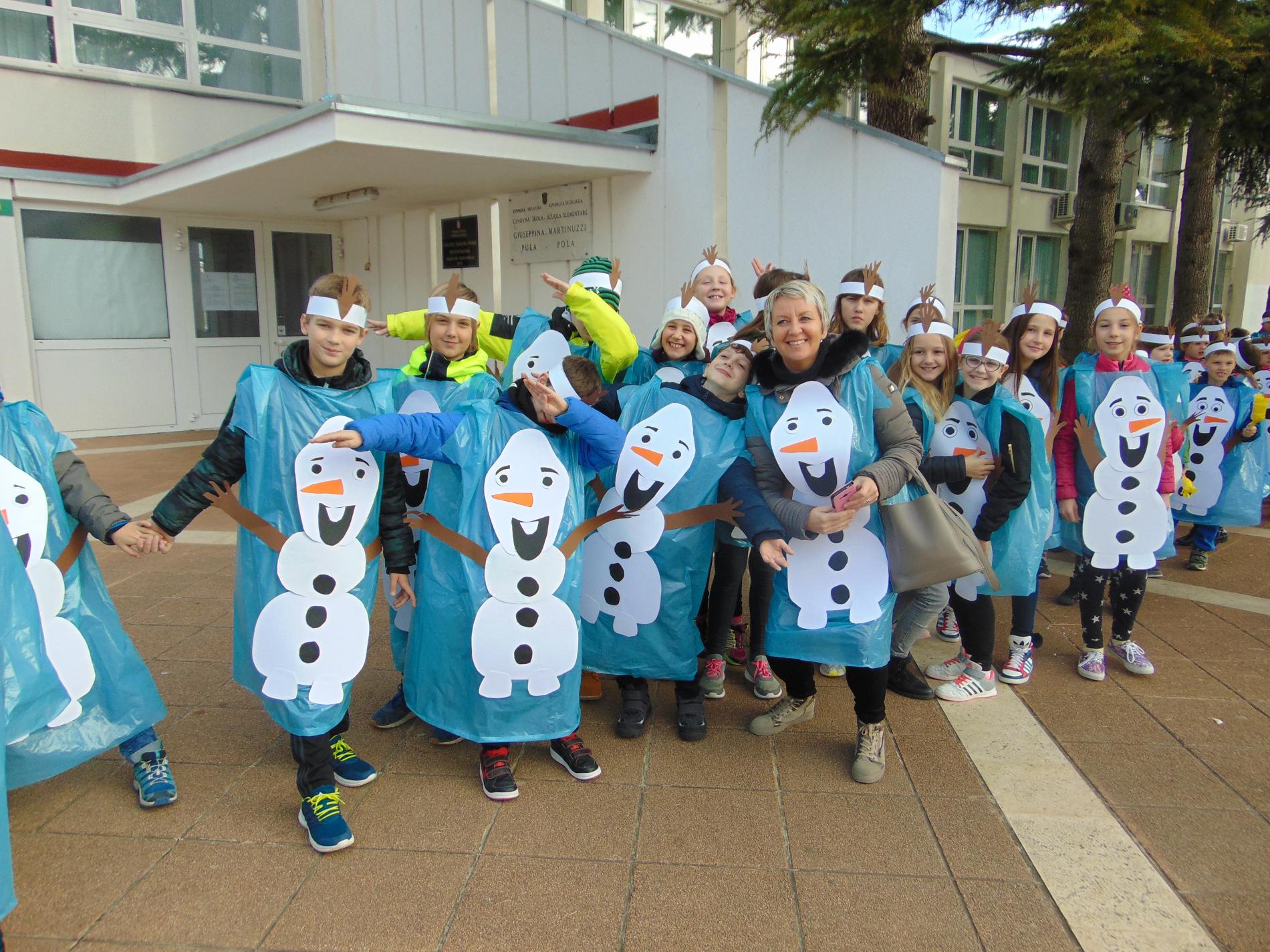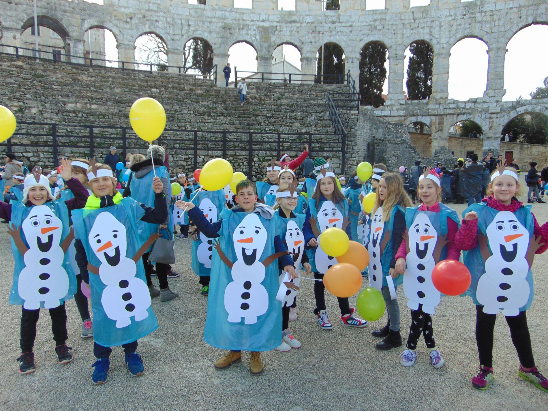 Oggi Olaf e' arrivato all'Arena di Pola, anzi non uno solo, tantissimi. Per chi non lo conosce: Olaf e' un personaggio molto simpatico e amato dai bambini, del famoso cartone animato Frozen, il regno di ghiaccio della Walt Disney.